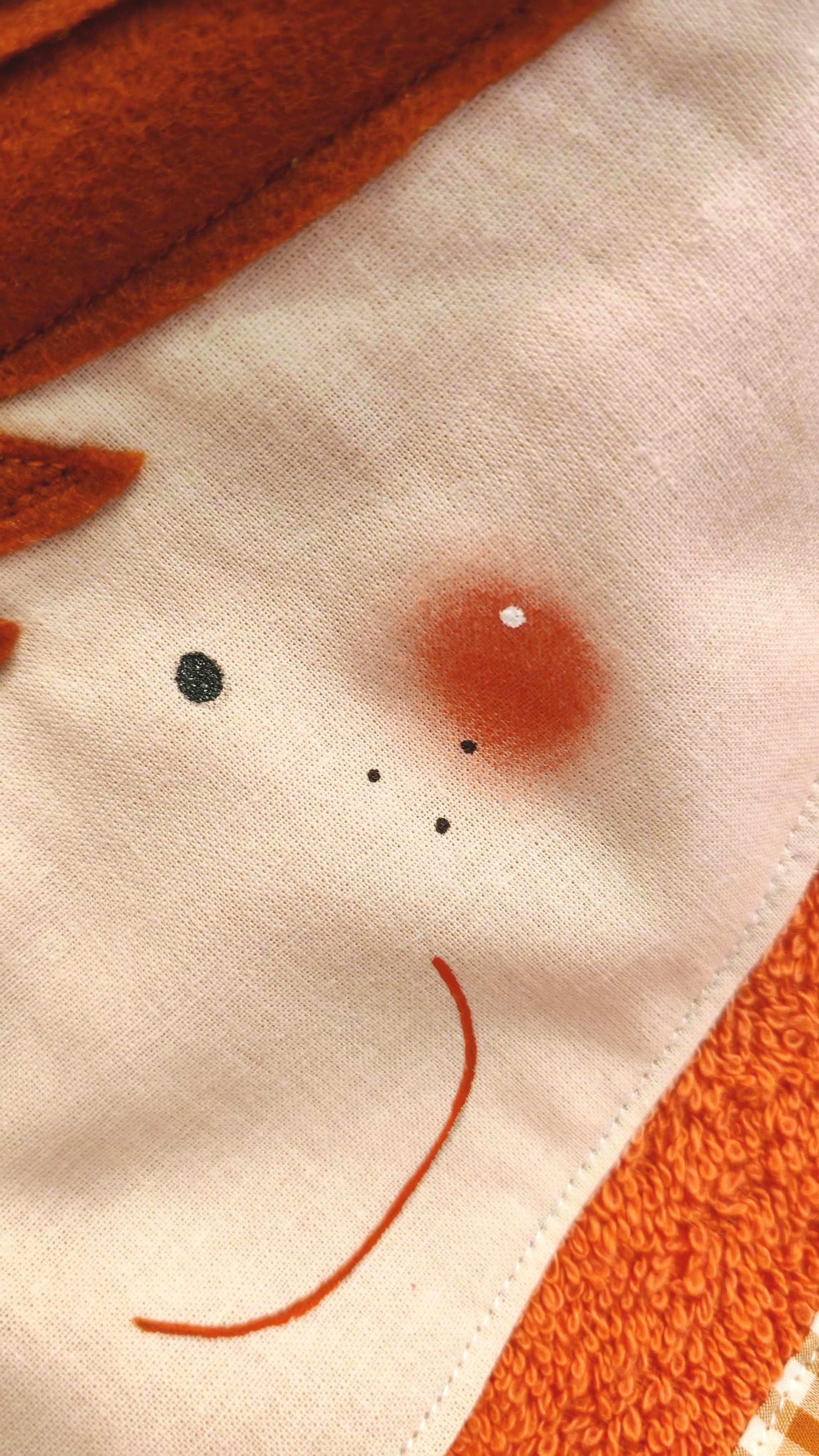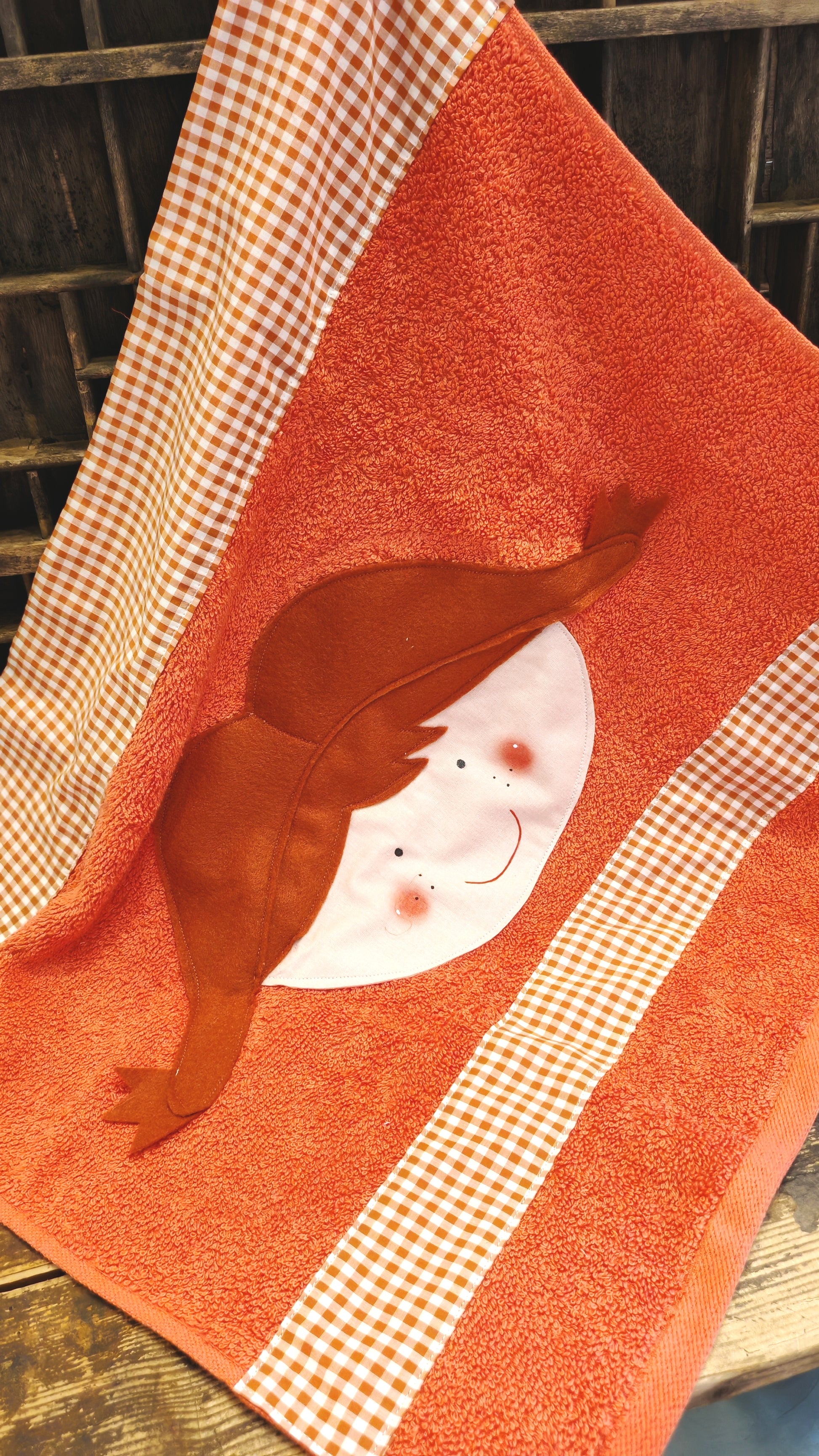 Asciugamano Asilo Pippi Calzelunghe cucito e dipinto a mano dalla nostra artigiana in morbido tessuto, ogni pezzo è unico.