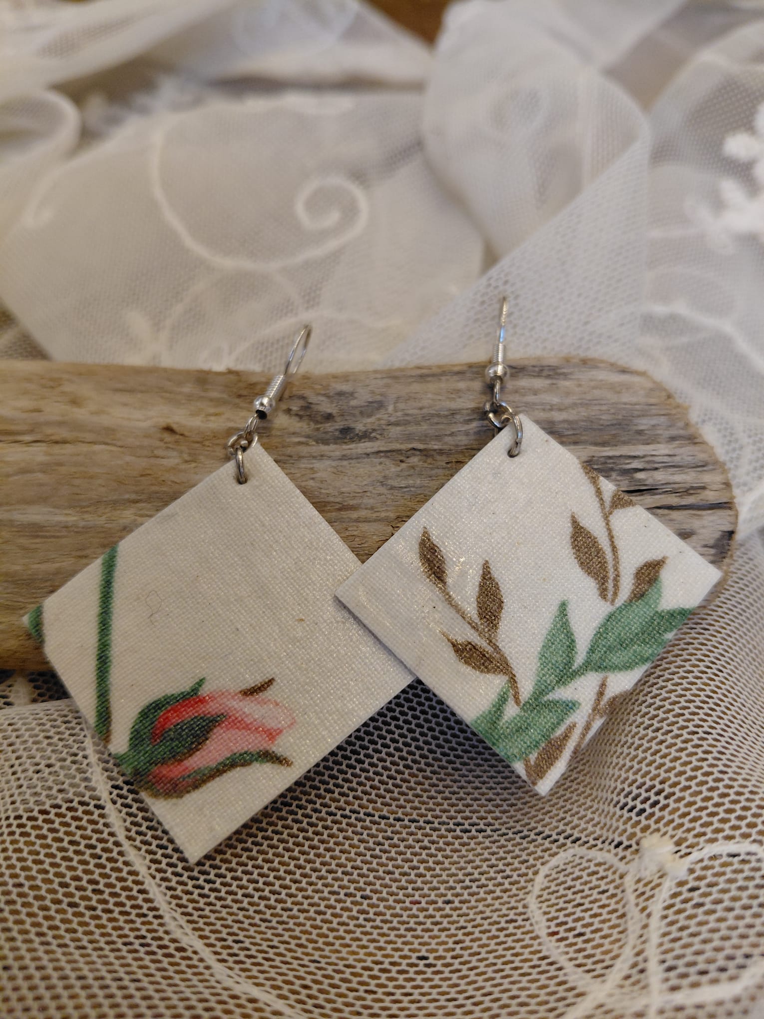 Orecchini B-Light in tessuto e cartapesta dipinta a mano. Ogni pezzo è una creazione unica.
