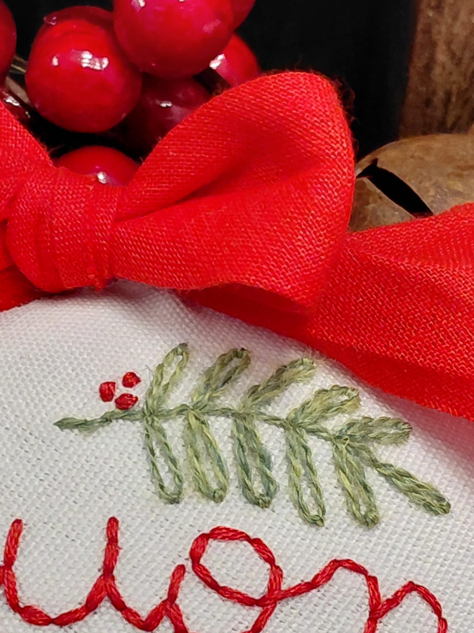 Palla di Natale da appendere ricamata a mano dalla nostra artigiana, ogni pezzo è unico e curato in ogni minimo dettaglio.