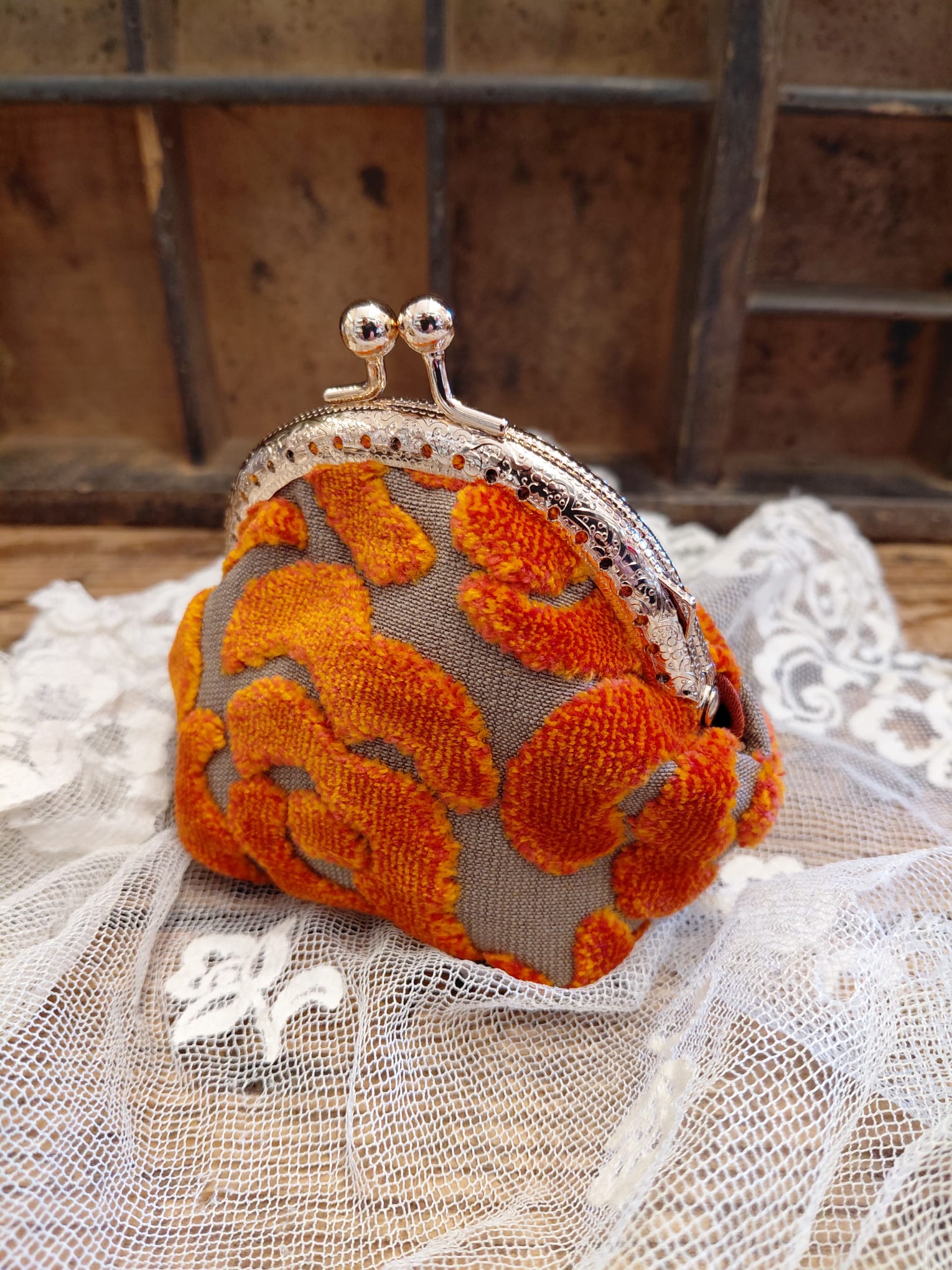 Portamonete con chiusura clic/clac cucito a mano dalla nostra artigiana in prezioso velluto 3D.