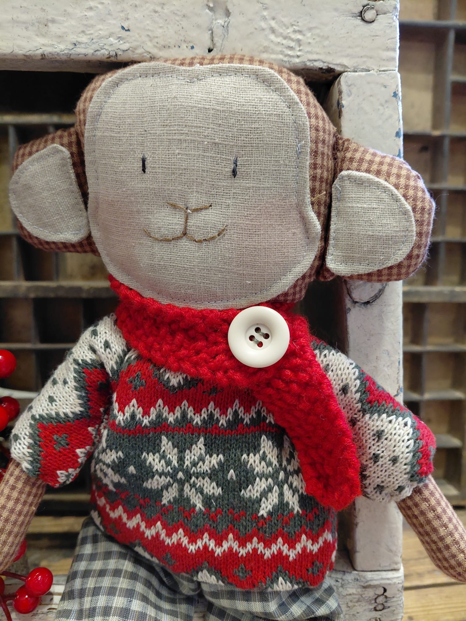 Pupazzo Scimmia cucita, dipinta a mano dalla nostra artigiana e curata in ogni minimo dettaglio. Ogni oggetto è una creazione unica ed irripetibile.