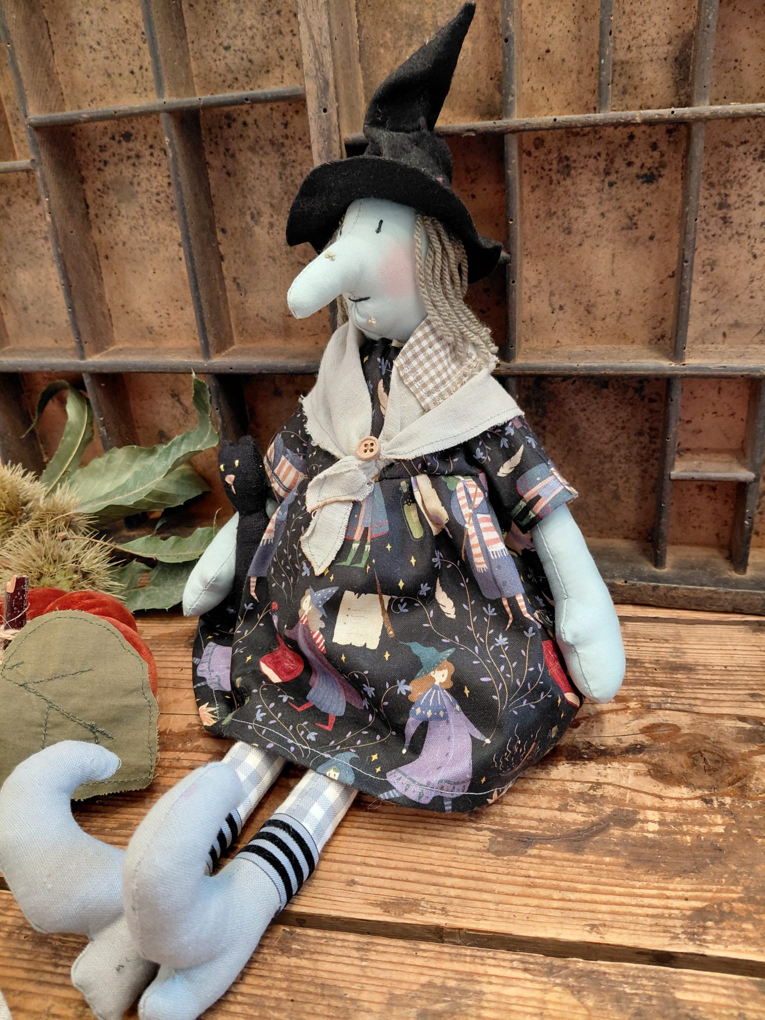 Pupazzo Strega decorata Halloween cucita, dipinta a mano dalla nostra artigiana e curata in ogni minimo dettaglio. Ogni oggetto è una creazione unica.