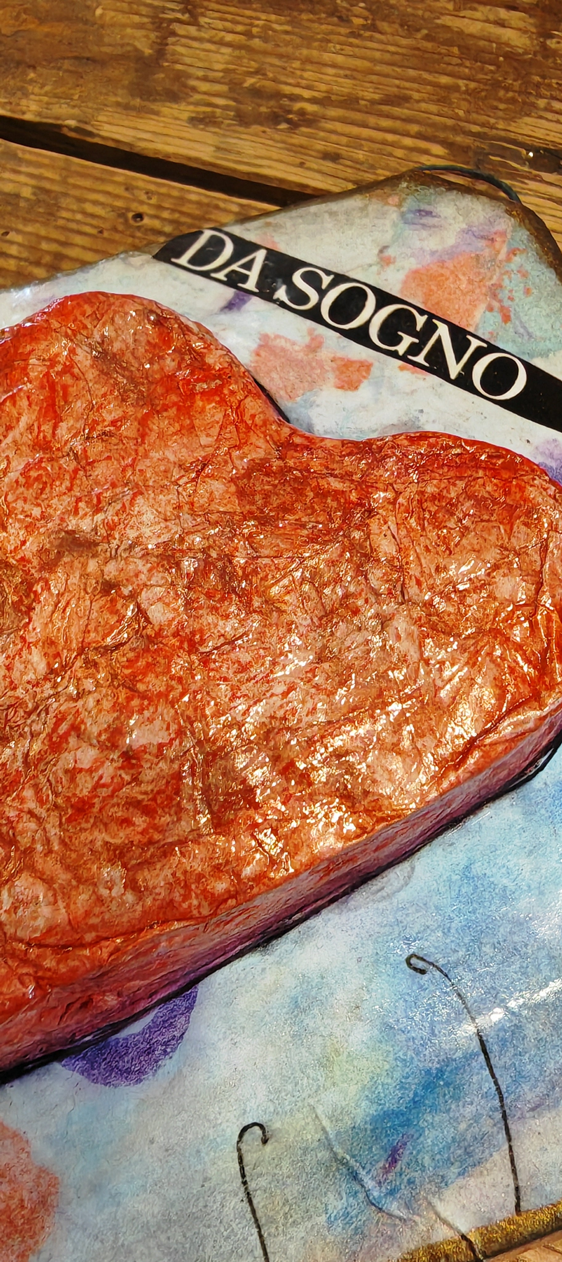 Quadretto pop-up decorazione Cuore in cartapesta, collage e tecnica mista. Pezzi unici, fatti e dipinti a mano.