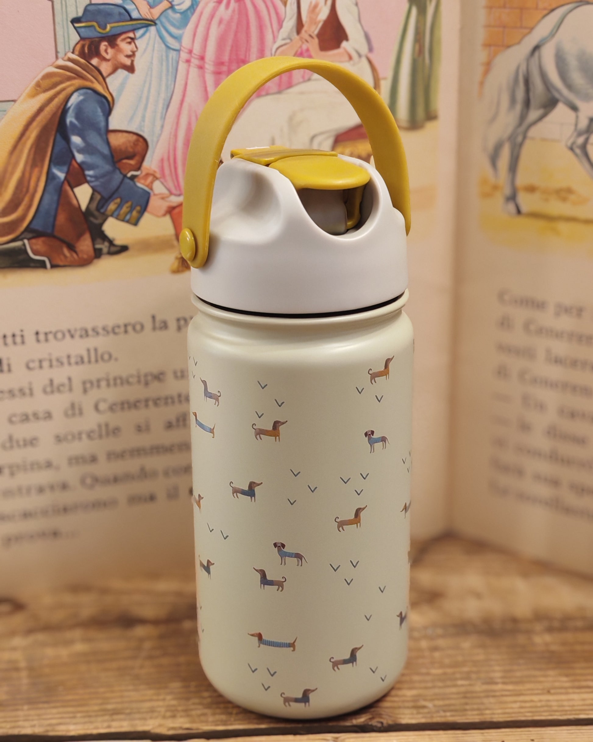 Borraccia in acciaio inossidabile 18/8 di alta qualità, con caratteristico design ideale per l'asilo, la scuola o le gite.